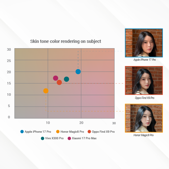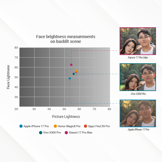 Across both scenes, the five flagship smartphones demonstrated competent performance, but they also exhibited clearly different rendering styles that reflect each manufacturer’s design choices. Xiaomi, vivo and OPPO tended to deliver brighter and more detailed subject representation, making their results appealing to those who prefer a clear and defined look. HONOR leaned toward a more processed aesthetic that may suit users who enjoy a stylized portrait effect. Apple’s iPhone 17 Pro produced softer and darker results in challenging backlit situations, offering a more subdued interpretation of the scene. These distinctions highlight how each device prioritizes different aspects of image creation, helping users select the smartphone that best aligns with their visual preferences and typical shooting conditions.