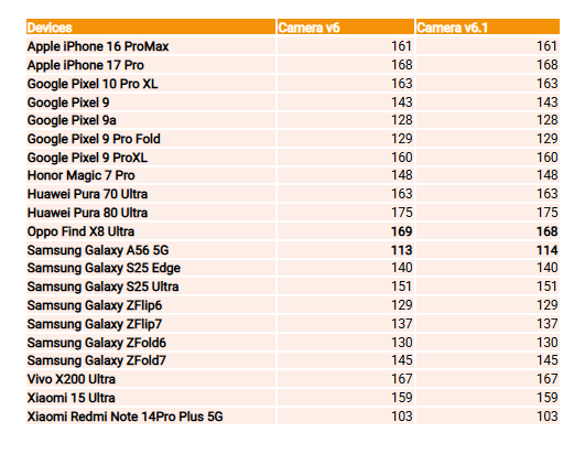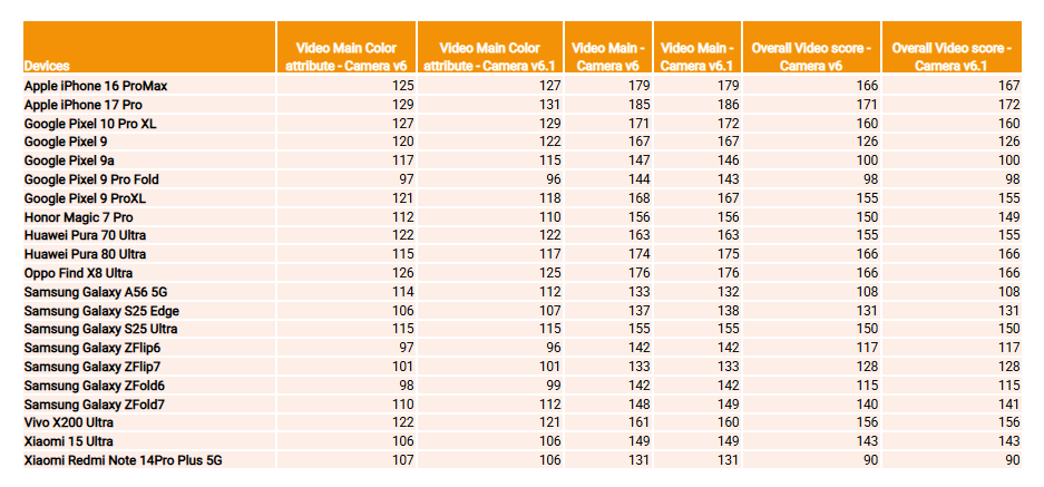 It is important to note that our overall methodology remains unchanged for these metrics. Objective video color measurements represent only one component of the overall color performance assessment and are always complemented by qualitative analyses based on natural scenes. Therefore, while this update does not significantly impact overall camera scores, it may cause minor variations in video color scores.